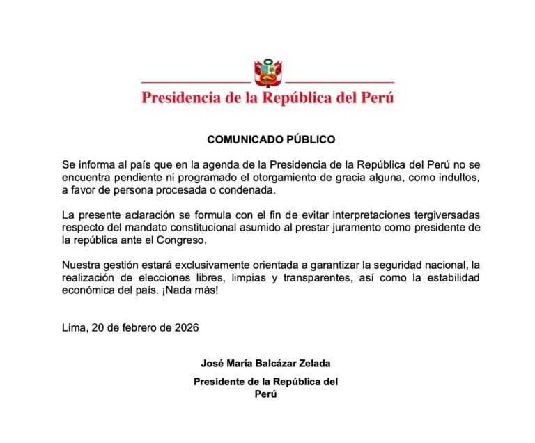 A través de la Presidencia de la República del Perú, se informó…