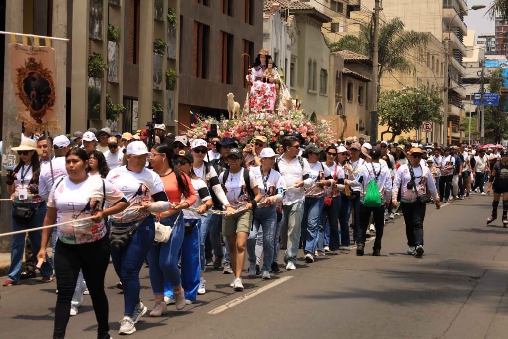 Lima, Perú. — La avenida Arequipa se convirtió este fin de semana en un corredor de fe y encuentro cultural con la multitudinaria procesión de la Divina Pastora, una de las manifestaciones religiosas más emblemáticas del pueblo venezolano. Cientos de fieles, en su mayoría migrantes venezolanos radicados en Lima, se congregaron para rendir homenaje a la patrona espiritual del estado Lara, reafirmando su identidad y esperanza lejos de su país.