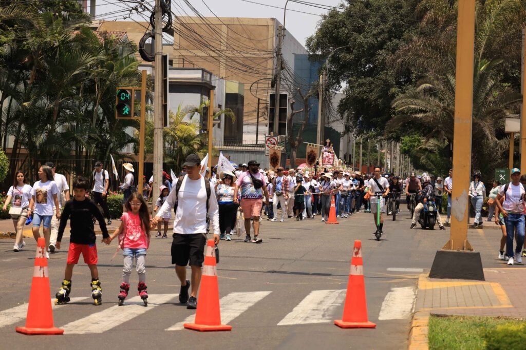 Vestidos de blanco, portando imágenes, rosarios y banderas venezolanas, los devotos recorrieron varios tramos de la emblemática vía limeña entre cánticos, oraciones y expresiones de profunda emoción. La actividad se desarrolló de manera pacífica y organizada, contando con el acompañamiento de autoridades locales y voluntarios que facilitaron el tránsito y la seguridad.